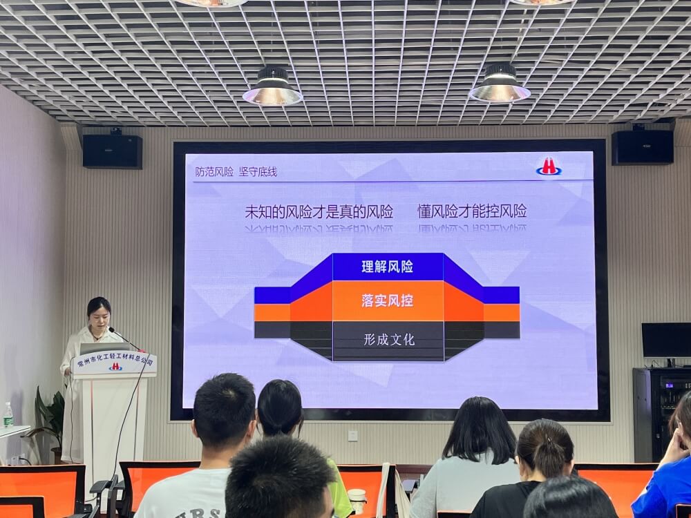 第二天下午,江蘇源博律師事務(wù)所丁律師向大家講解了合同履行的風(fēng)險(xiǎn)防范,公司法務(wù)王雨甸就風(fēng)險(xiǎn)管控相關(guān)注意事項(xiàng)與大家分享交流。